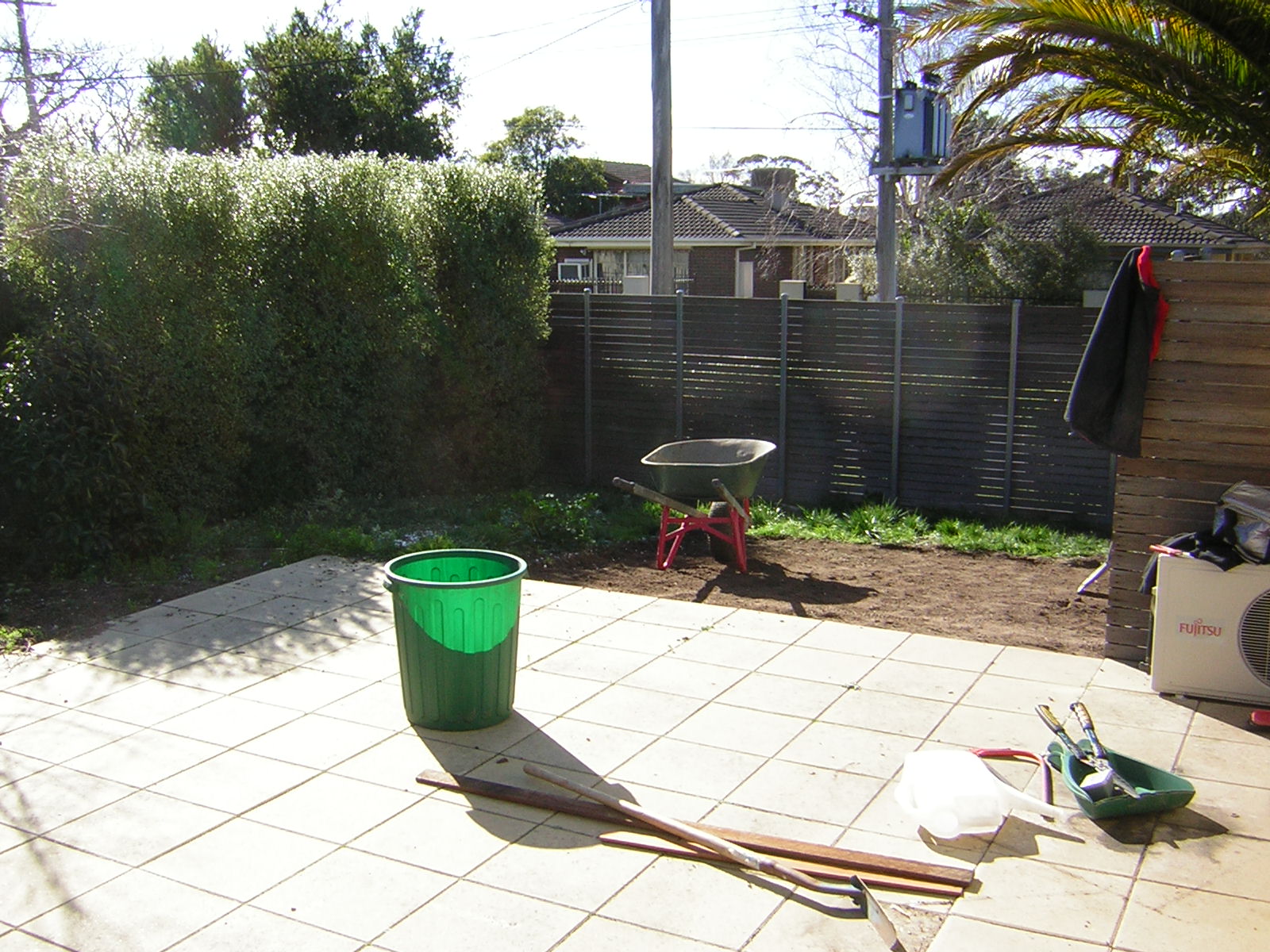 We did that and more. After an inital on site consulation we decided that a low mainteneace drought tolerant plant schedule was required. The inital design was really the final design (hence the schetch) as it ticked all the boxes for the landlord. Apart from minimal weeding this garden needed nearly no maintenace at all which is great for rental properties.