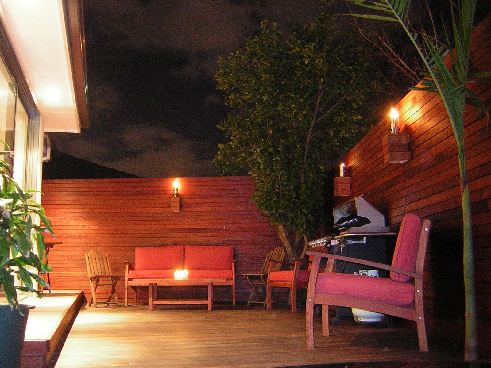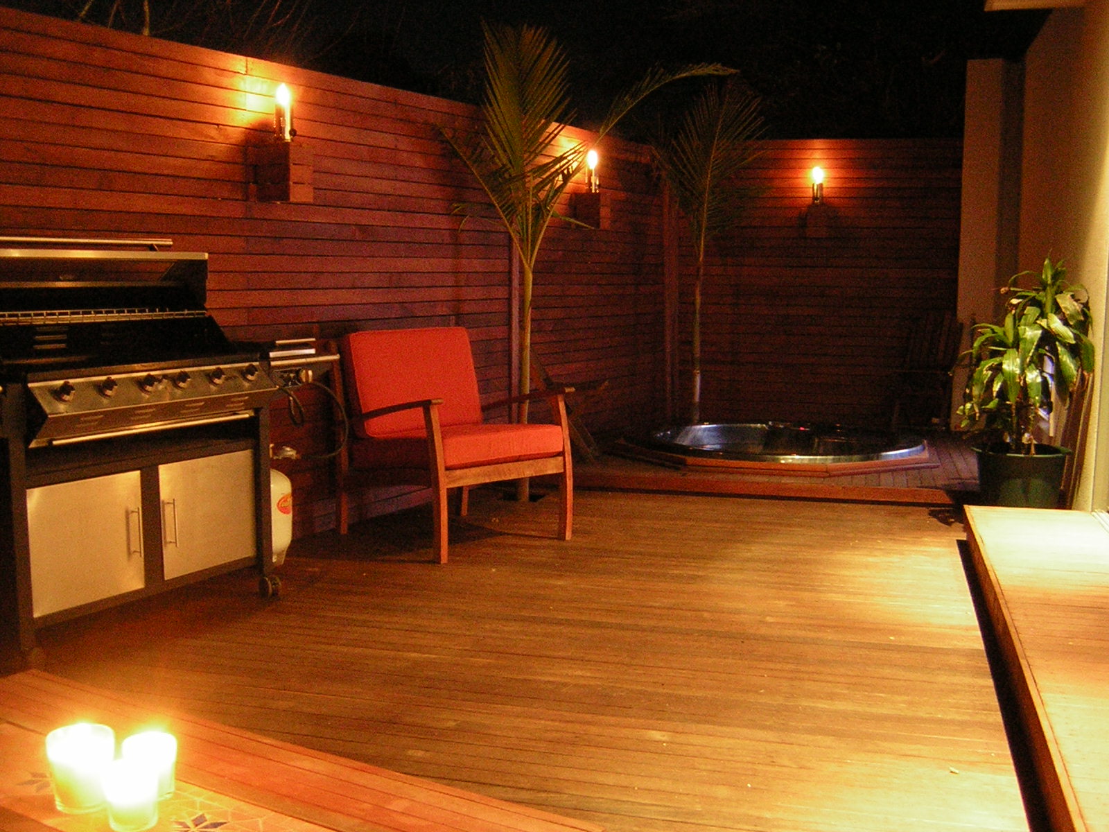 We also needed to disect the outside area into 3 zones - cooking, living and relaxing. In the cooking area we added a 6 burner BBQ and flame torches as lighting.
