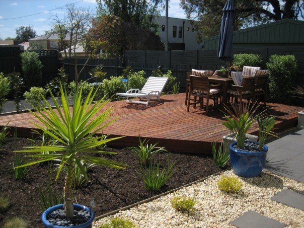 We removed all the couch grass from the top garden area and built a sail like deck so that we could soften the area with planting and add a jacaranda tree for shade in a few years time once the tree matures.