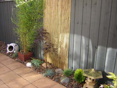 These plants included shade loving Japanese maples that stood out with their coloured trunks during the winter and in the autumn when they lost their leaves again the colour would be very striking. Also included nadinia domestica gulf stream for their oriental look, golden diosomas for their colour and flowers, blue Fescue for its texture and form and re used some of the clients bamboo that they had in a pot as a striking feature next to an ornamental Japanese maple.